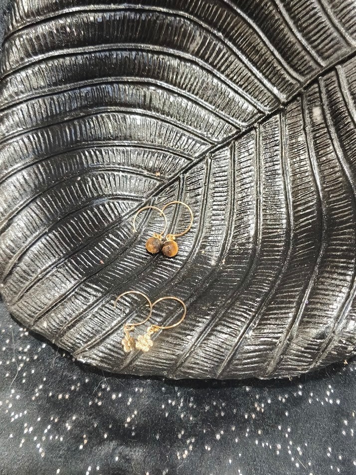 Une paire avec des boules facettées en oeil de tigre de 4mm.