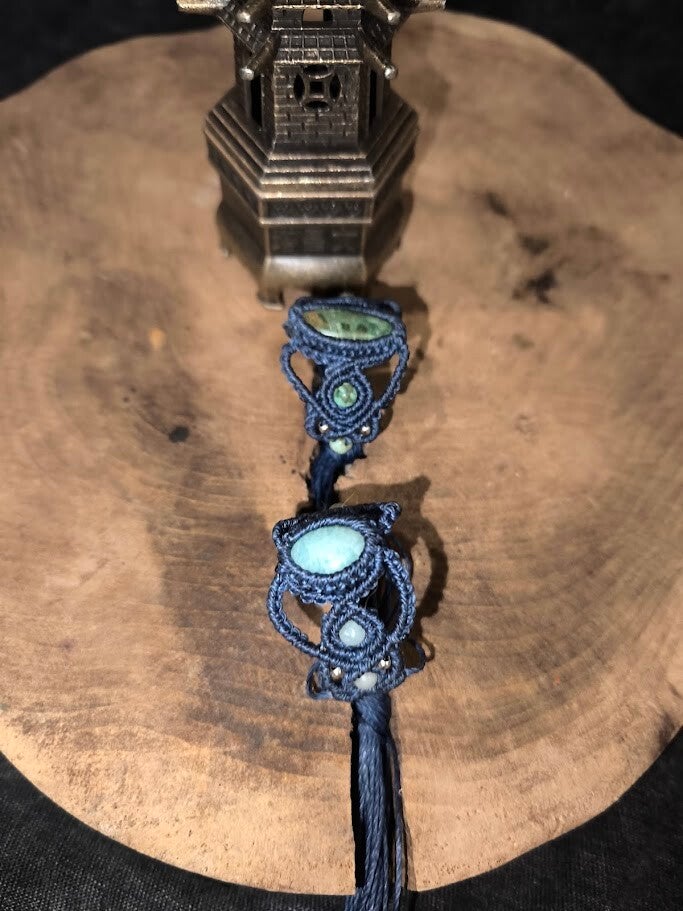Vous trouverez une bague macrame sur fil navy avec son cabochon de