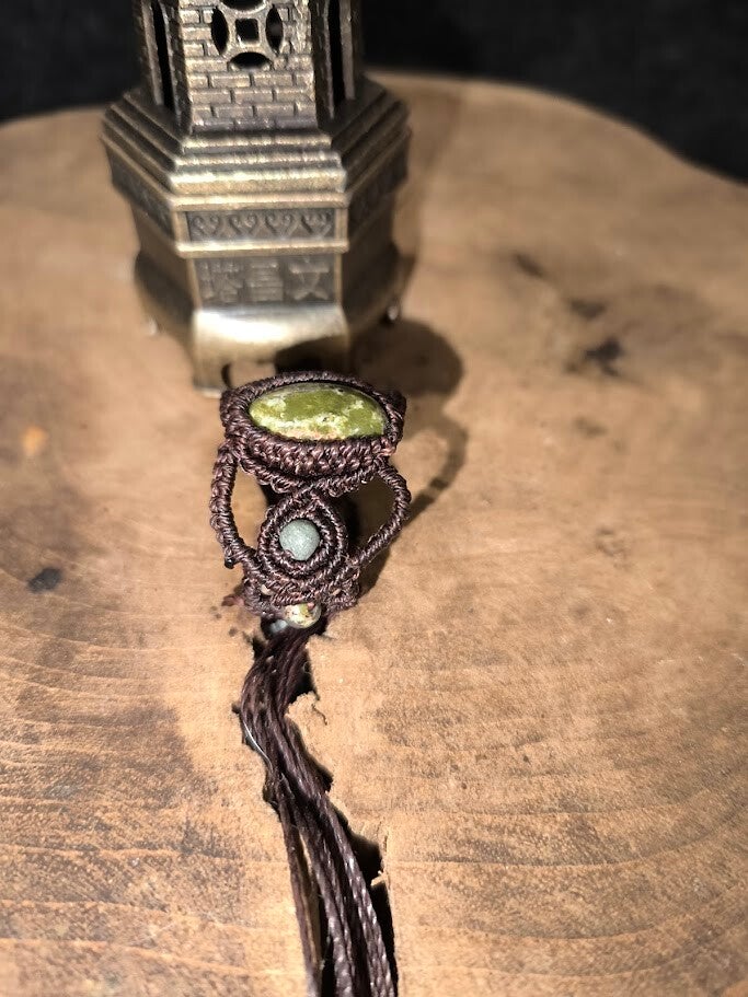 Bague macrame et sa pierre naturelle d'Unakite