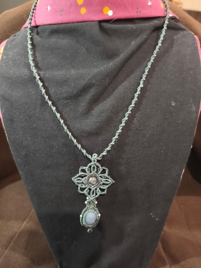 Médaillon macramé avec sa pierre naturelle monté sur un cordon